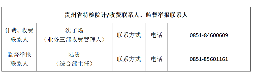贵州省特种设备检验检测院收费联系人、监督举报联系人