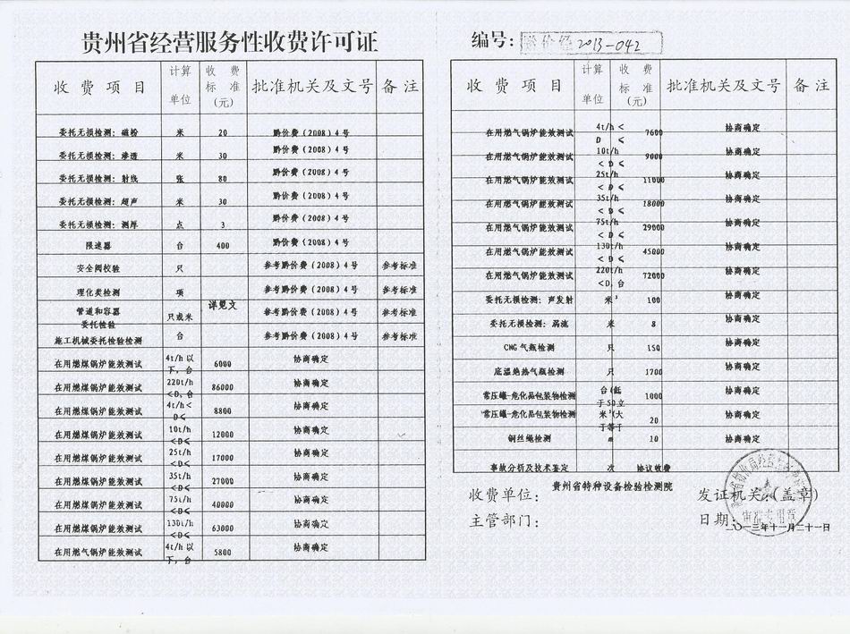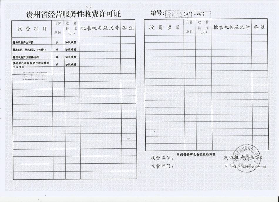 贵州省经营服务性收费许可证